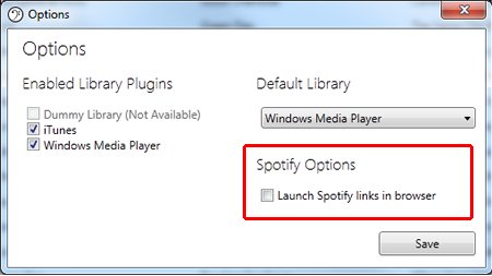 The option is available to make "Play in Spotify" links from the information pages launch the Spotify page in your browser rather than loading in Spotify. This allows you to get a HTTP link that you can share with other people.
